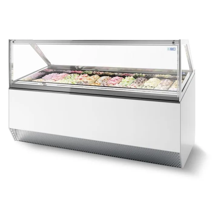Chez Pro Équipement CHR Bordeaux, découvrez la vitrine à crème glacée Millenium 16, un équipement professionnel conçu pour la présentation et la conservation des glaces artisanales et desserts glacés.